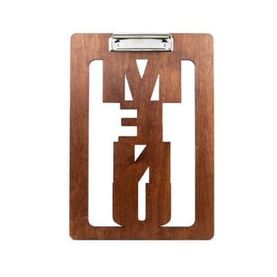 Le menu Contemporain est fait de bois contreplaqué d’une épaisseur de 5mm et permet d’insérer votre menu en pochettes plastiques via son système à vis.