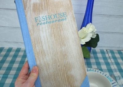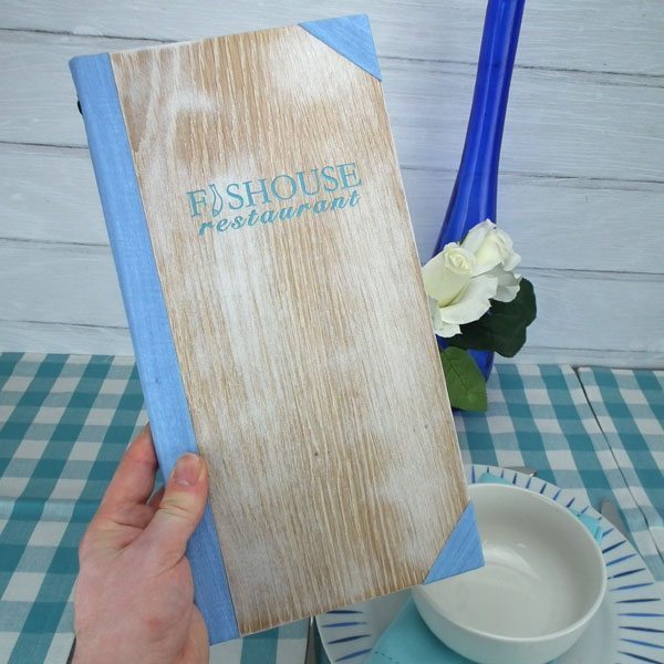 La personnalisation du menu Wood va bien plus loin encore. Découpe d’une fenêtre sur la couverture, gravure sur bois ou encore plaque métallique apposée, optez pour la façon la plus à même d’attirer le regard sur le nom de votre enseigne et de rehausser encore davantage la beauté de votre menu.