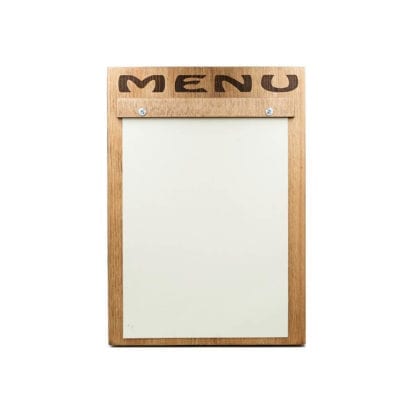 3 configurations de menus s’offrent à vous : le format classique A4 (225x335mm), un autre de plus petite taille en A5 (165x245mm), et enfin, une planchette à menu au format slim (165x335mm).