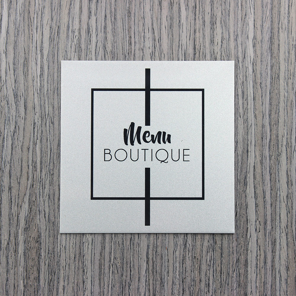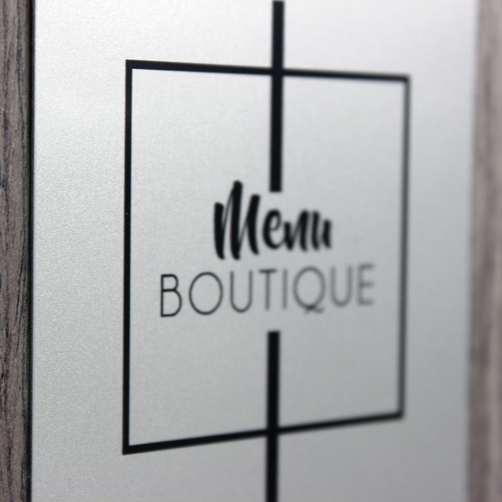 Le menu Contemporain est fait de bois contreplaqué d’une épaisseur de 5mm et permet d’insérer votre menu en pochettes plastiques via son système à vis.