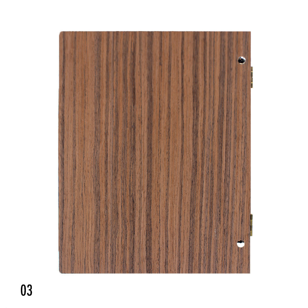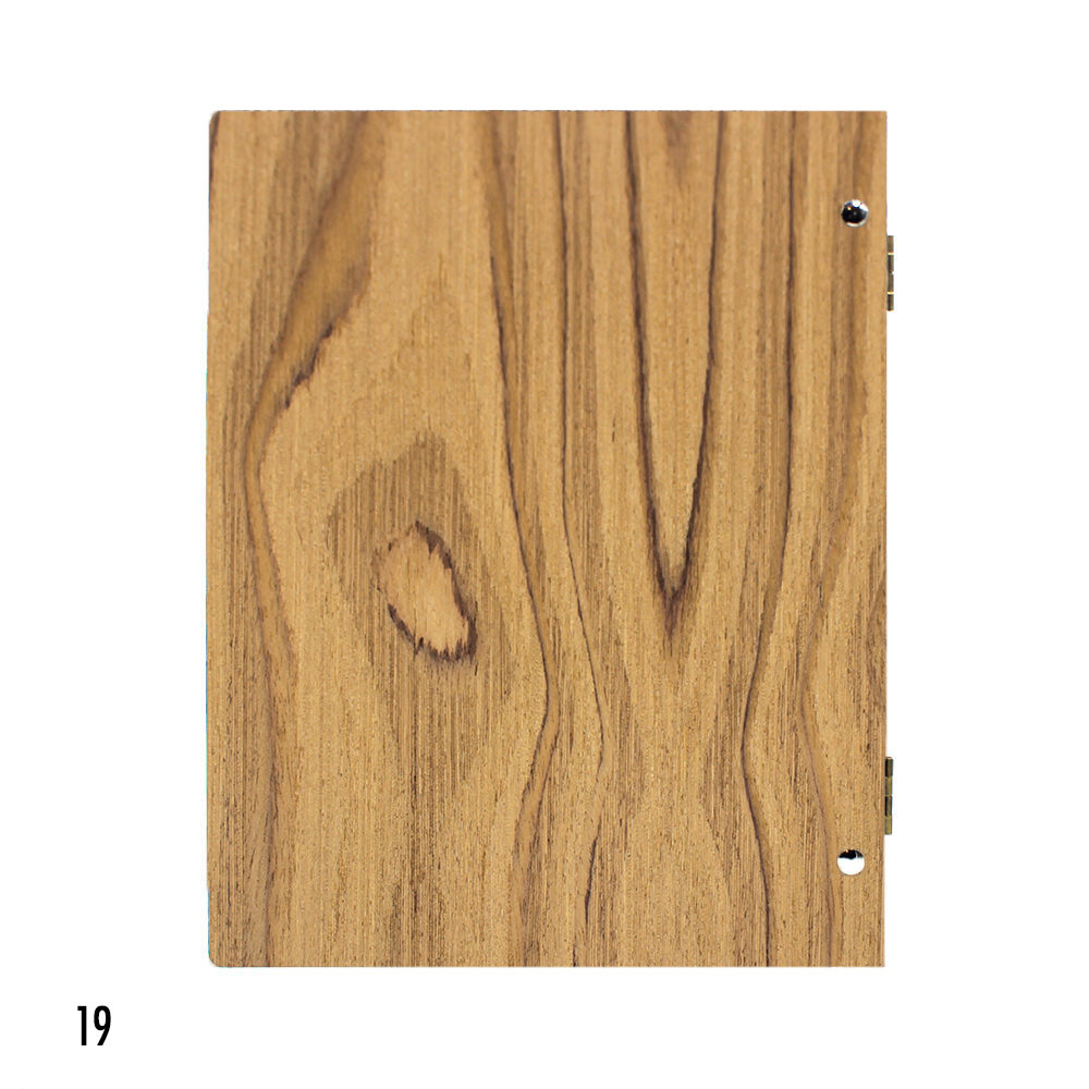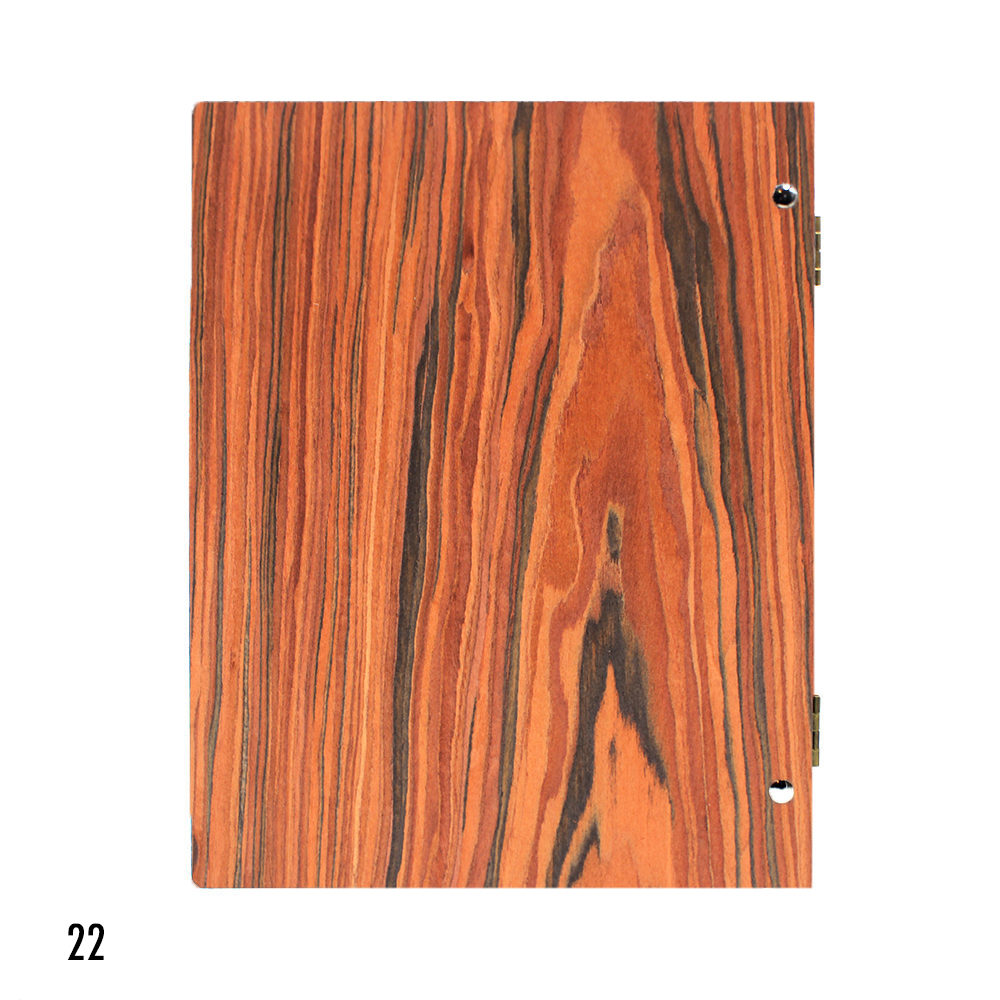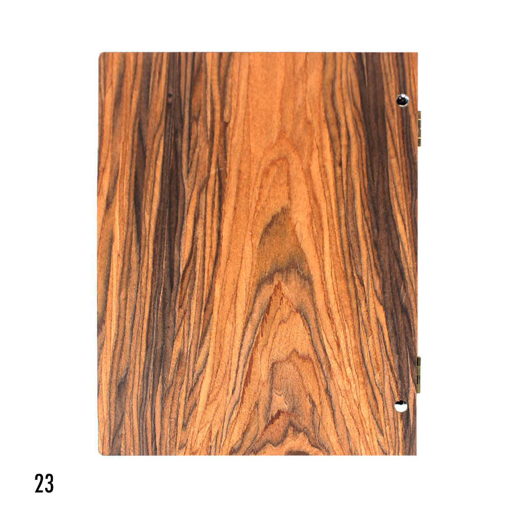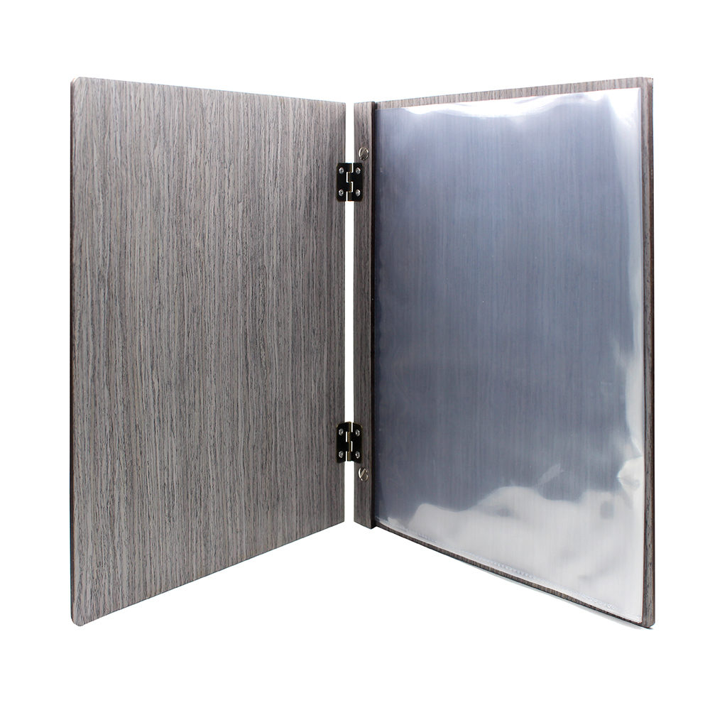 The Contemporary menu is made of plywood with a thickness of 5mm and allows you to insert your menu in plastic bags via its screw system.