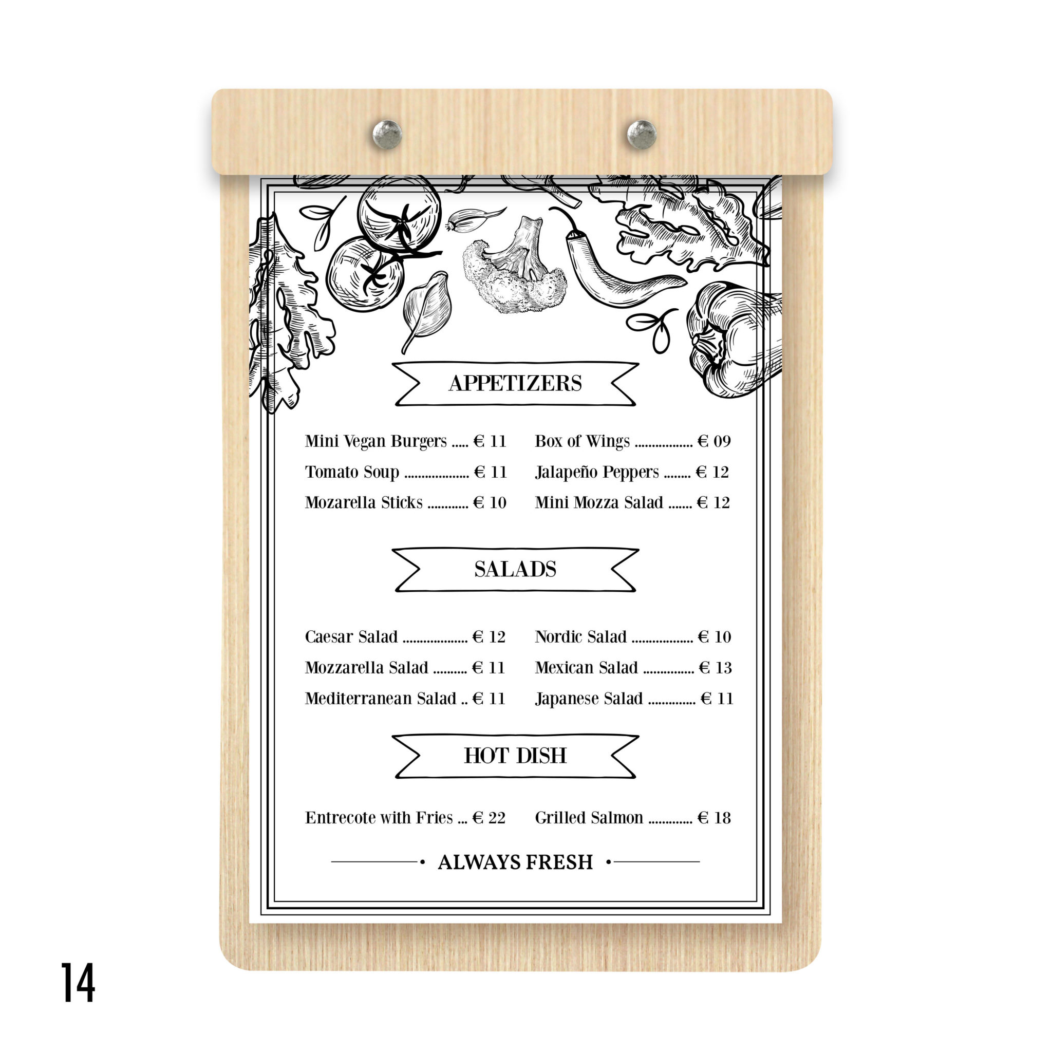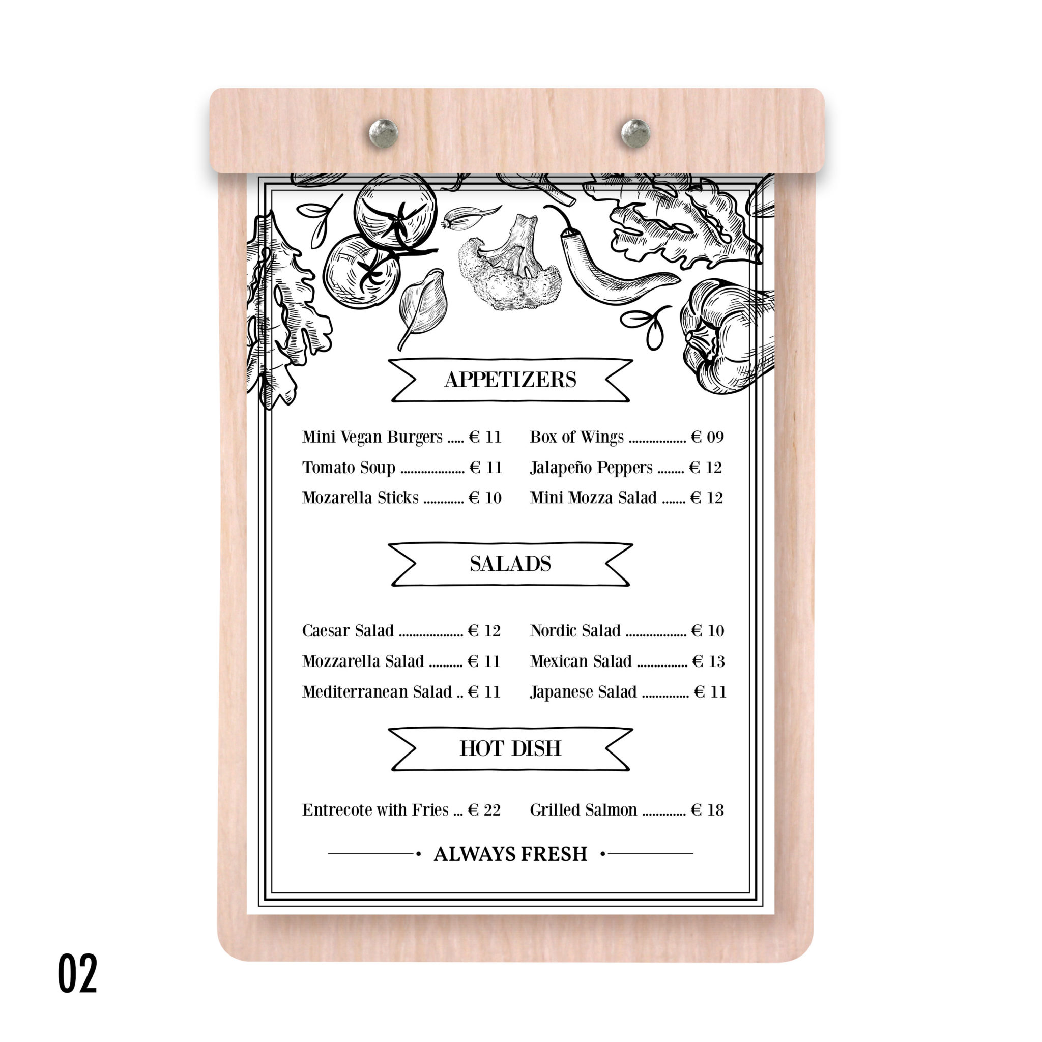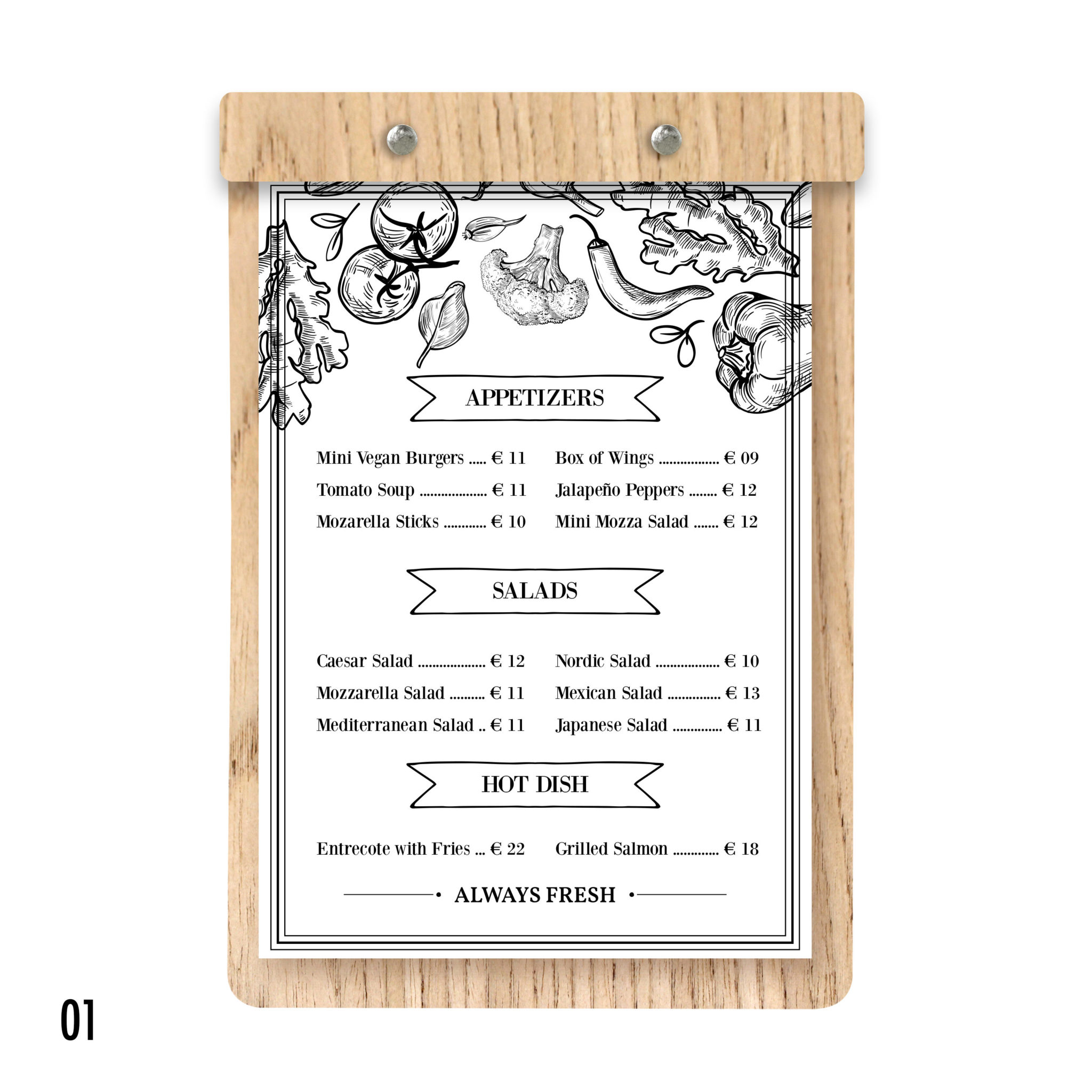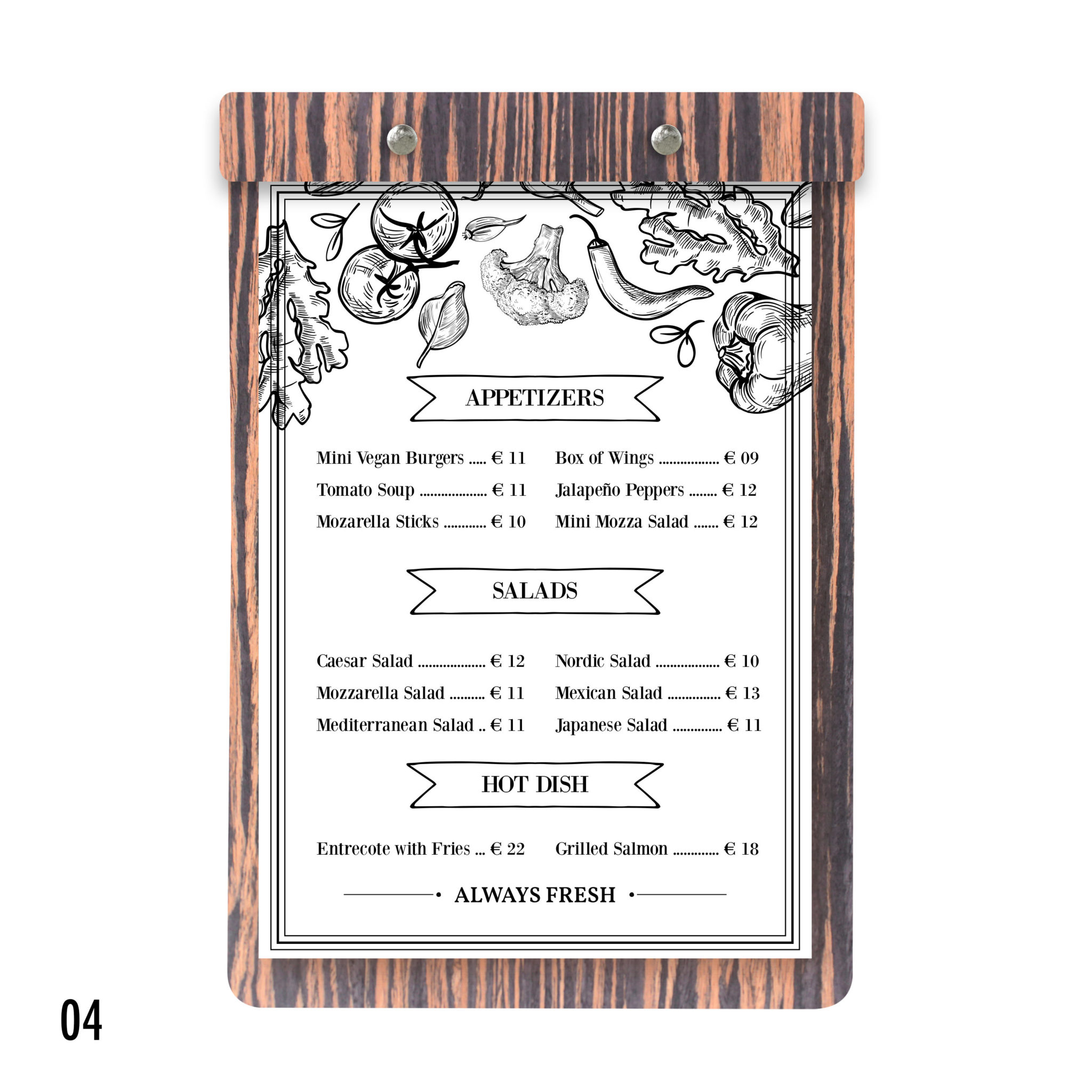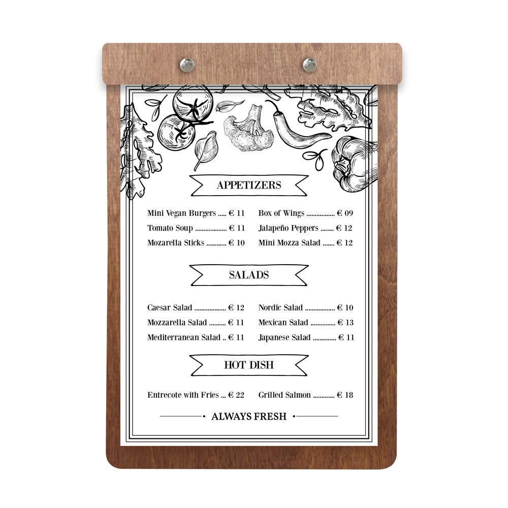 Robuste, élégant, au très bon rapport qualité/prix, il est la planche menu de référence. Que ce soit pour votre carte principale, suggestion du jour, carte des dessert ou vin du moment, il saura sublimer les produits que vous proposer et participé à l’expérience utilisateur.