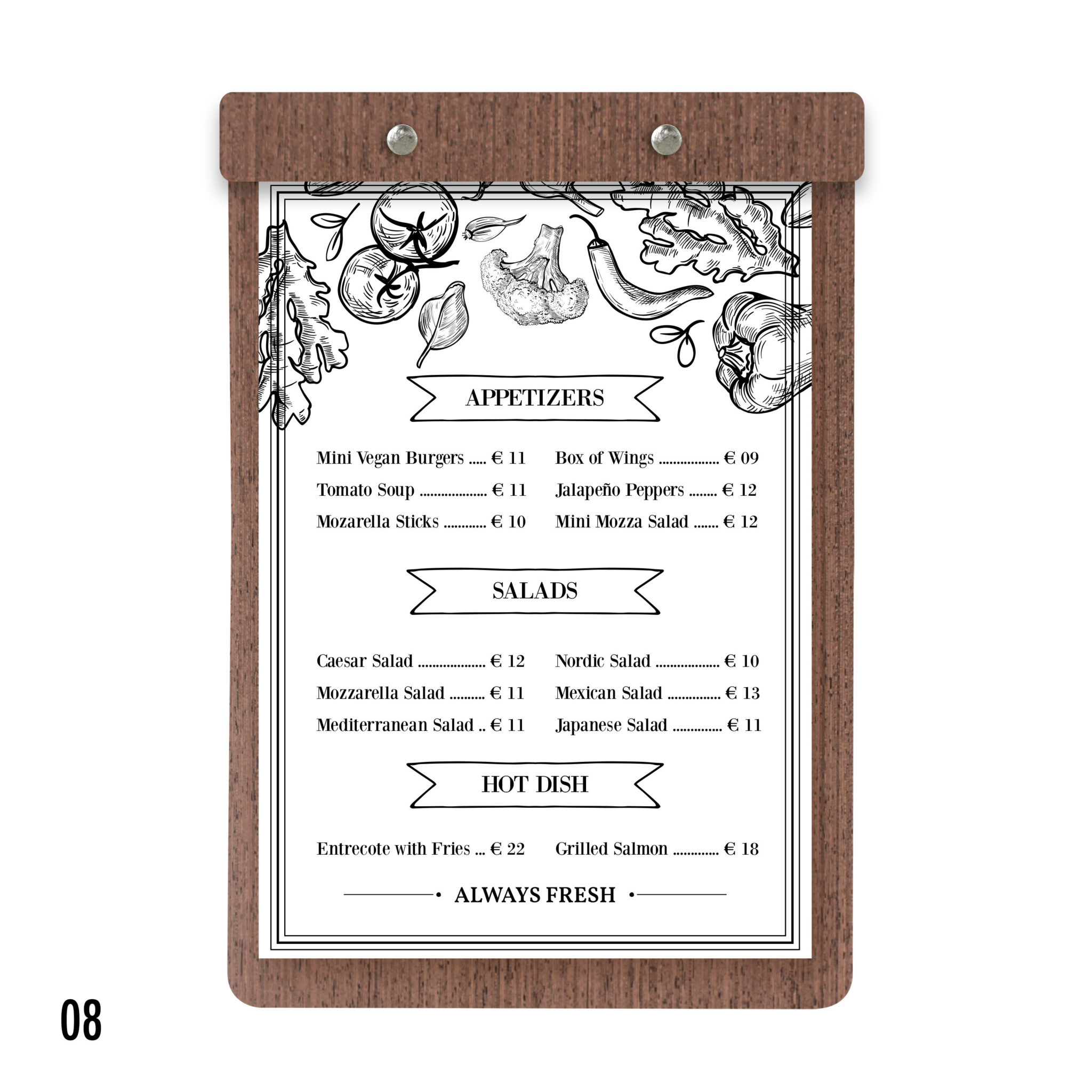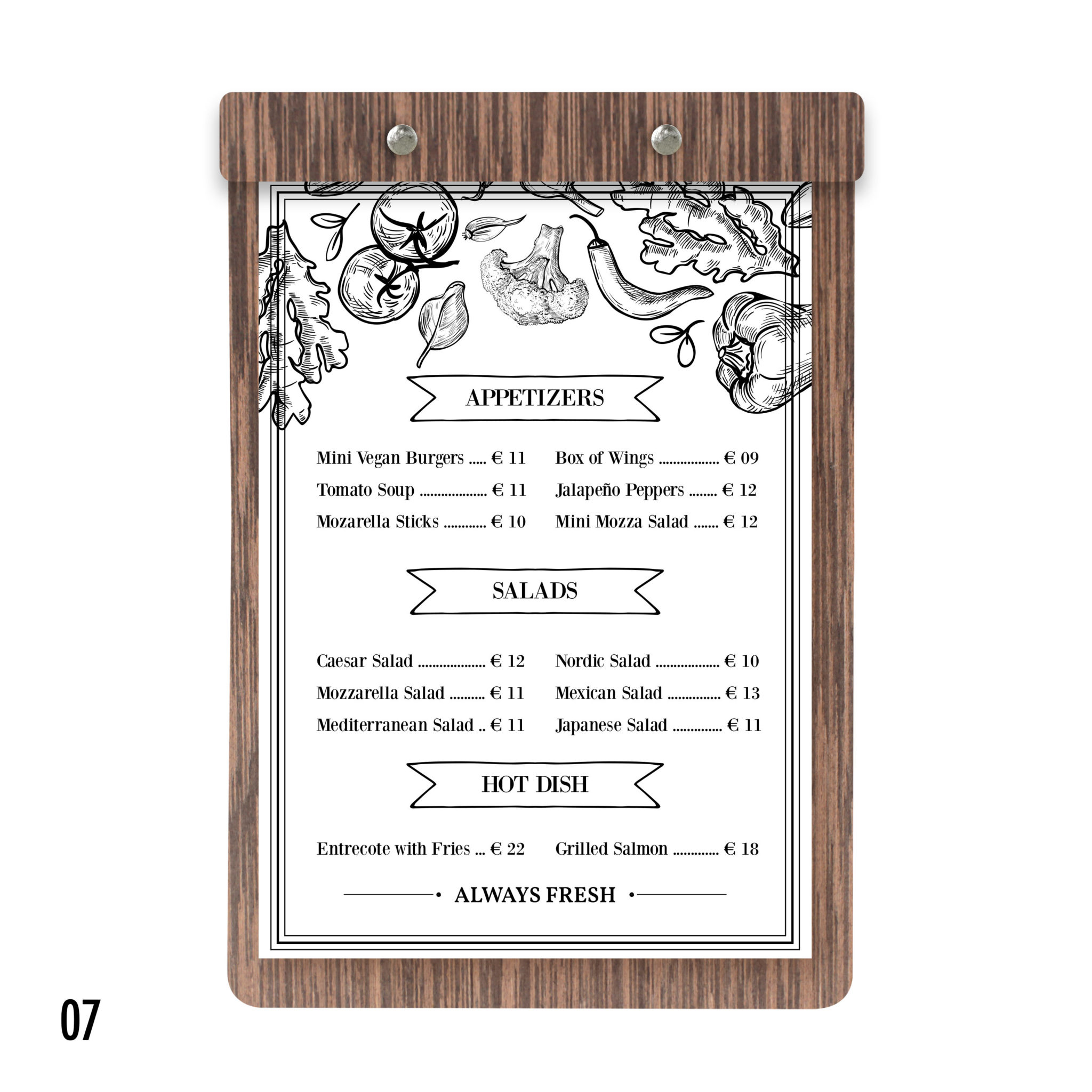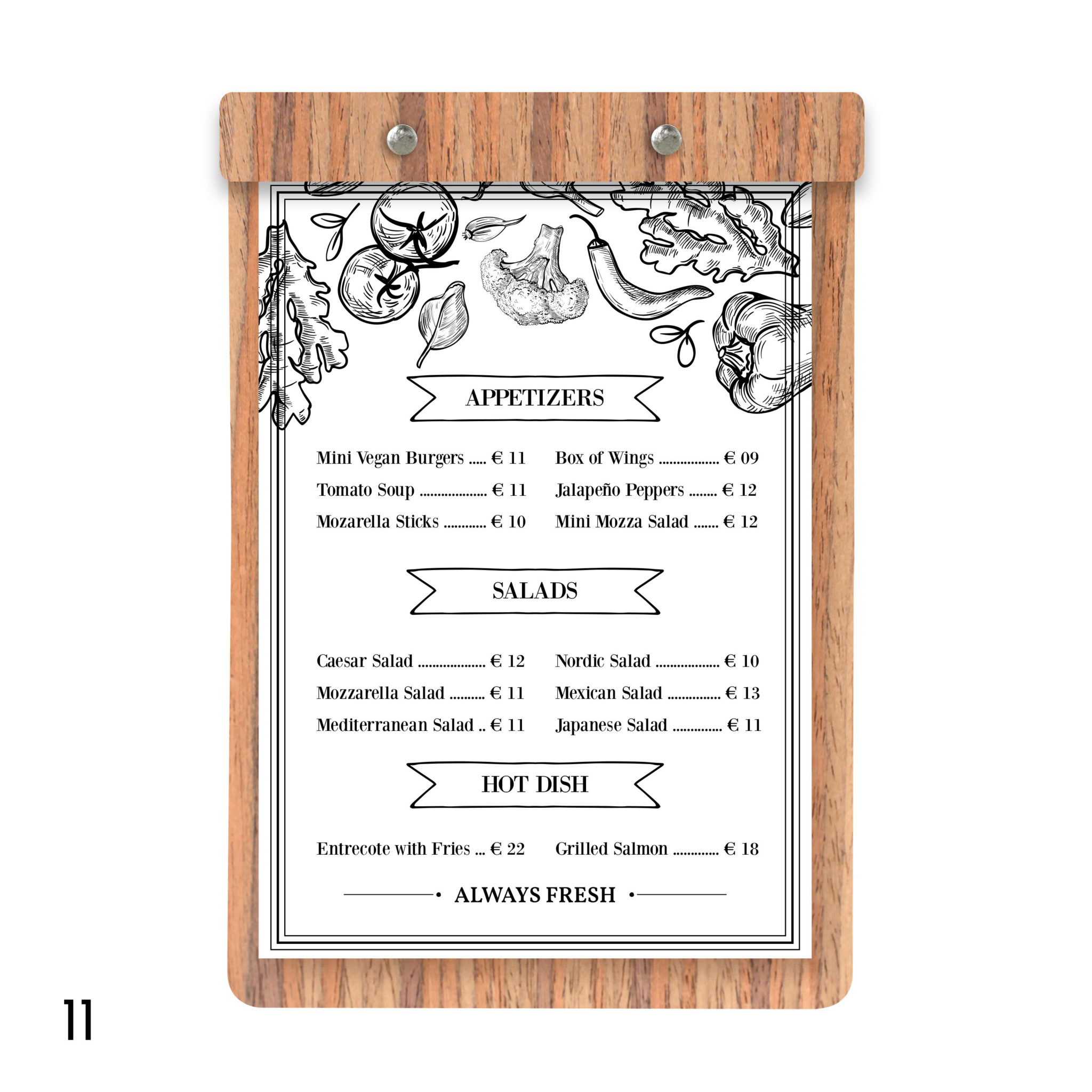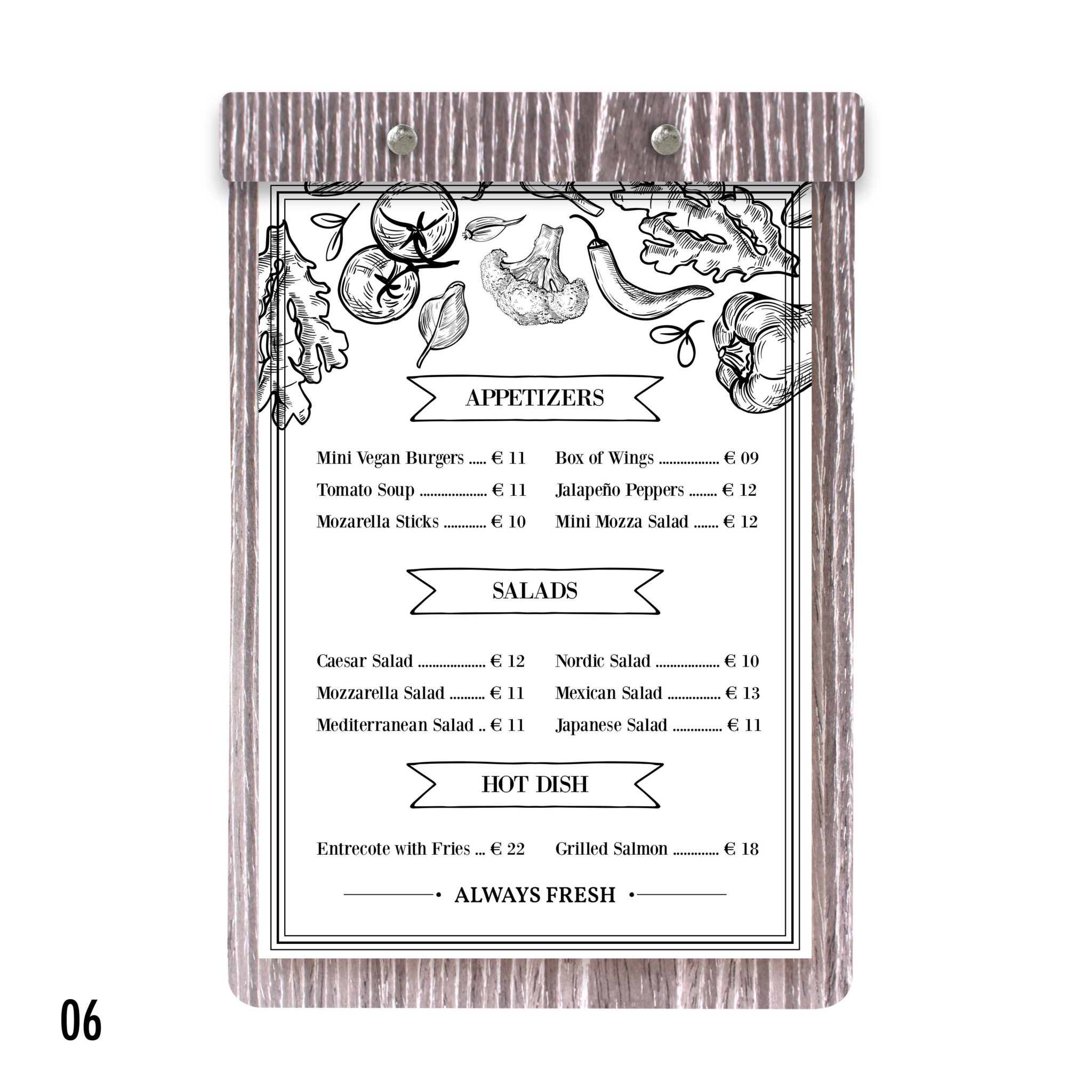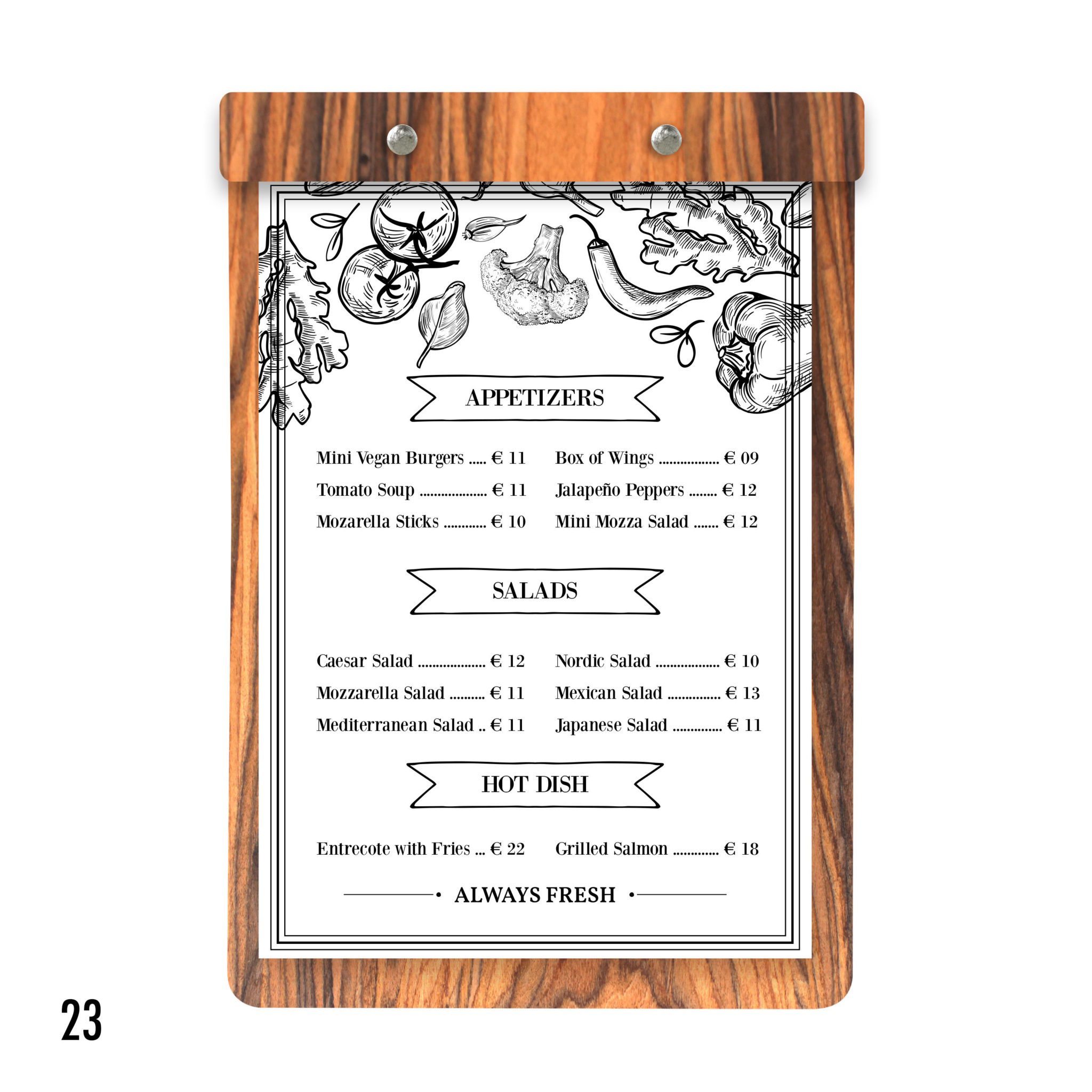 Robuste, élégant, au très bon rapport qualité/prix, il est la planche menu de référence. Que ce soit pour votre carte principale, suggestion du jour, carte des dessert ou vin du moment, il saura sublimer les produits que vous proposer et participé à l’expérience utilisateur.