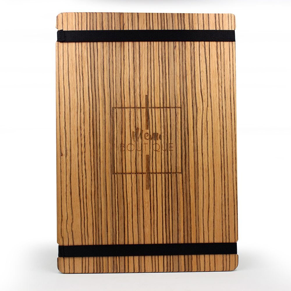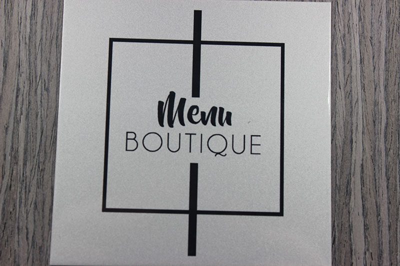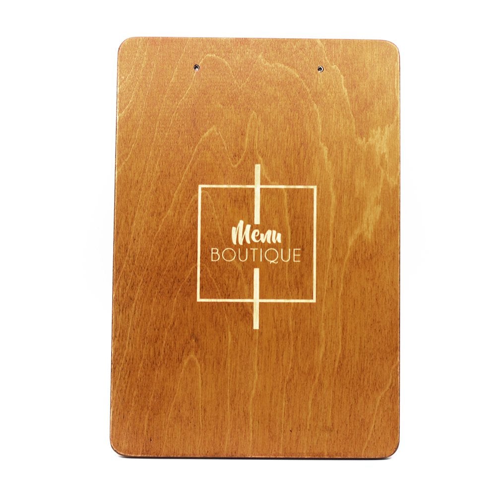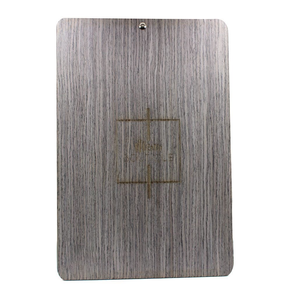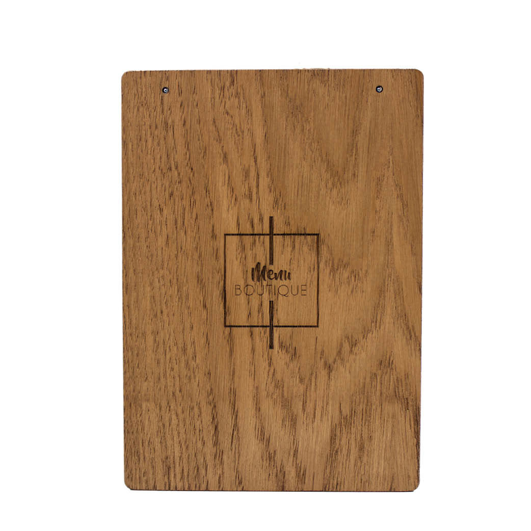 La gravure laser permet de personnalisé le menu à votre image. Elle peut s’effectuer sur le dos de la planche ou sur son côté face, sous l’emplacement des feuilles (sur une surface de 200x20mm).