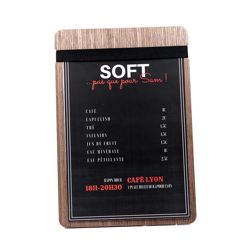 Robuste, élégant, au très bon rapport qualité/prix, il est la planche menu de référence. Que ce soit pour votre carte principale, suggestion du jour, carte des dessert ou vin du moment, il saura sublimer les produits que vous proposer et participé à l'expérience utilisateur.
