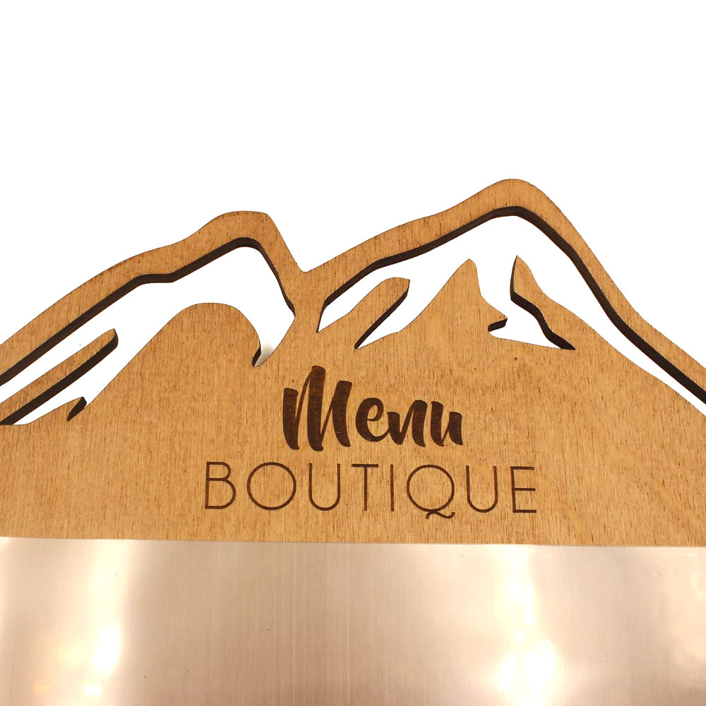 Idéal pour des établissements au thème montagnard, le Menu Planche des Alpes est disponible en plusieurs coloris.