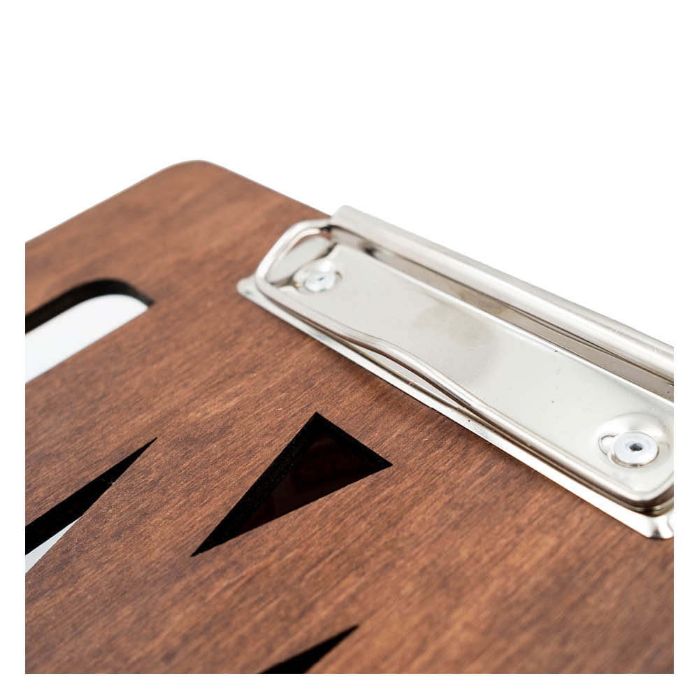 La gravure laser permet de personnaliser le menu à votre image. Vous pouvez choisir votre type de clips : à dents ou classique.